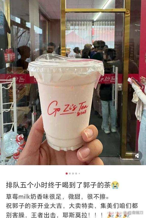 而在她的奶茶店“郭子的茶”门口,是一眼望不到头的长龙般的队伍,有人甚至在开业当天凌晨三点就守候在店门前。